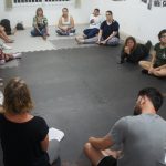 Especificamente para o Curso Saúde do Trabalhador, o objetivo foi abordar questões subjetivas como o conceito de autoridade, respeito ao ritmo do próximo, sobre o quanto é possível potencializar alguma característica pessoal por meio das próprias atividades relacionais de movimentação.