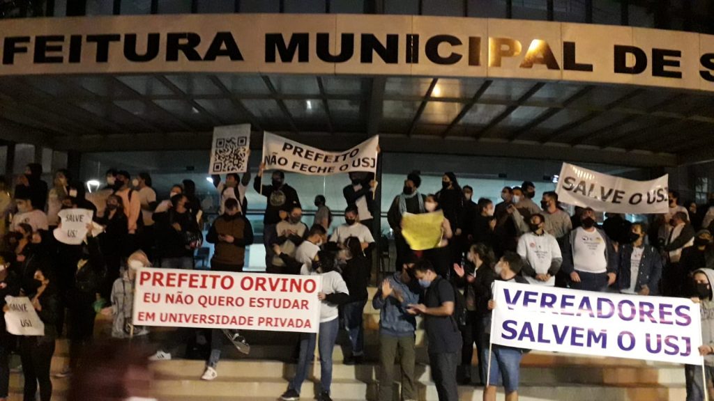 Na noite desta segunda-feira (23), o Sintram/SJ esteve presente no ato em defesa da manutenção do USJ, realizado em frente à Prefeitura Municipal de São José. Reuniram-se ainda na manifestação, servidores, estudantes, lideranças políticas e a comunidade josefense na luta em defesa da instituição de ensino.