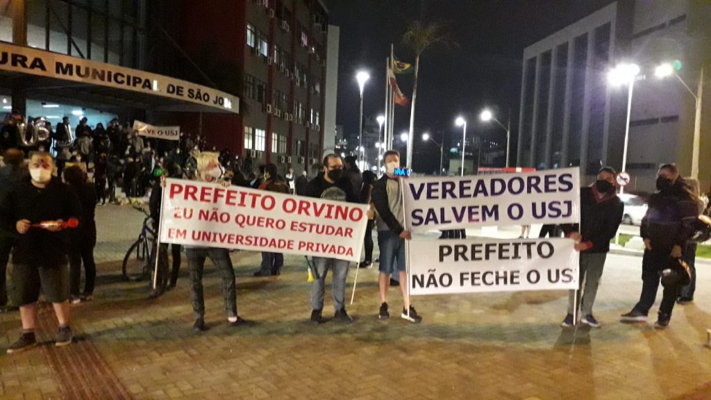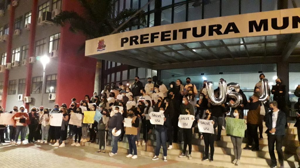 Na noite desta segunda-feira (23), o Sintram/SJ esteve presente no ato em defesa da manutenção do USJ, realizado em frente à Prefeitura Municipal de São José. Reuniram-se ainda na manifestação, servidores, estudantes, lideranças políticas e a comunidade josefense na luta em defesa da instituição de ensino.