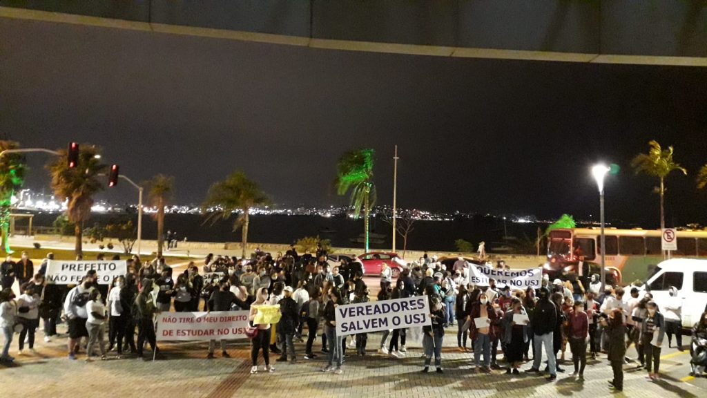 Os participantes do ato protestaram com cartazes e discursos contra o possível fechamento do Centro Universitário Municipal de São José, anunciado na semana anterior pelo poder Executivo do município. Parte da Avenida Beira Mar foi fechada durante a manifestação.