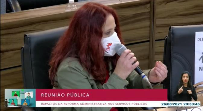 A presidente do Sintram/SJ, Jumeri Zanetti, representou a entidade na Reunião Pública sobre os “Impactos da Reforma Administrativa nos Serviços Públicos”, caso haja aprovação da PEC 32/2020. O evento, transmitido online, ocorreu na Câmara Municipal de Vereadores São José nesta quinta-feira (26), às 19h.