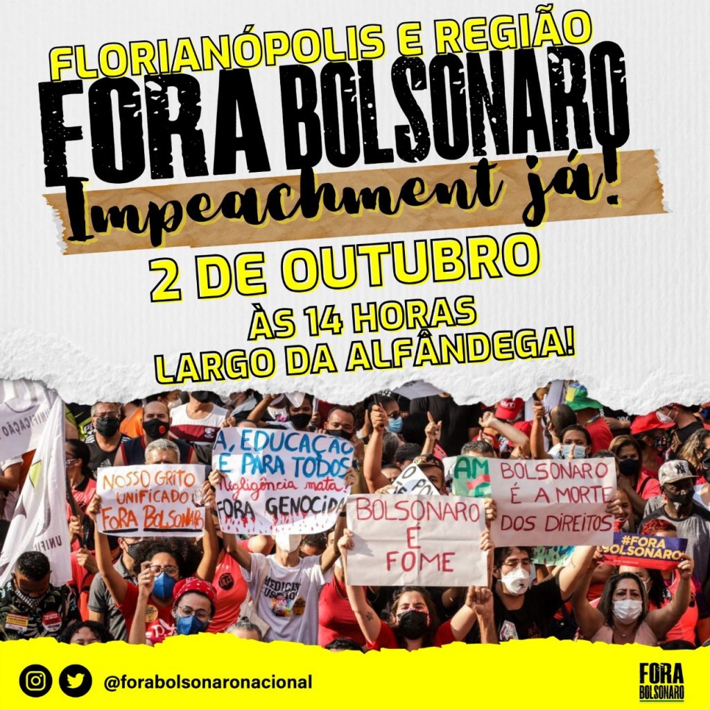 O Sindicato dos Trabalhadores no Serviço Público Municipal de São José (Sintram-SJ) convida a todos para se juntarem aos trabalhadores pelo #ForaBolsonaro. O ato pelo impeachment do presidente acontecerá neste sábado, 2, às 14h, no Largo da Alfândega.