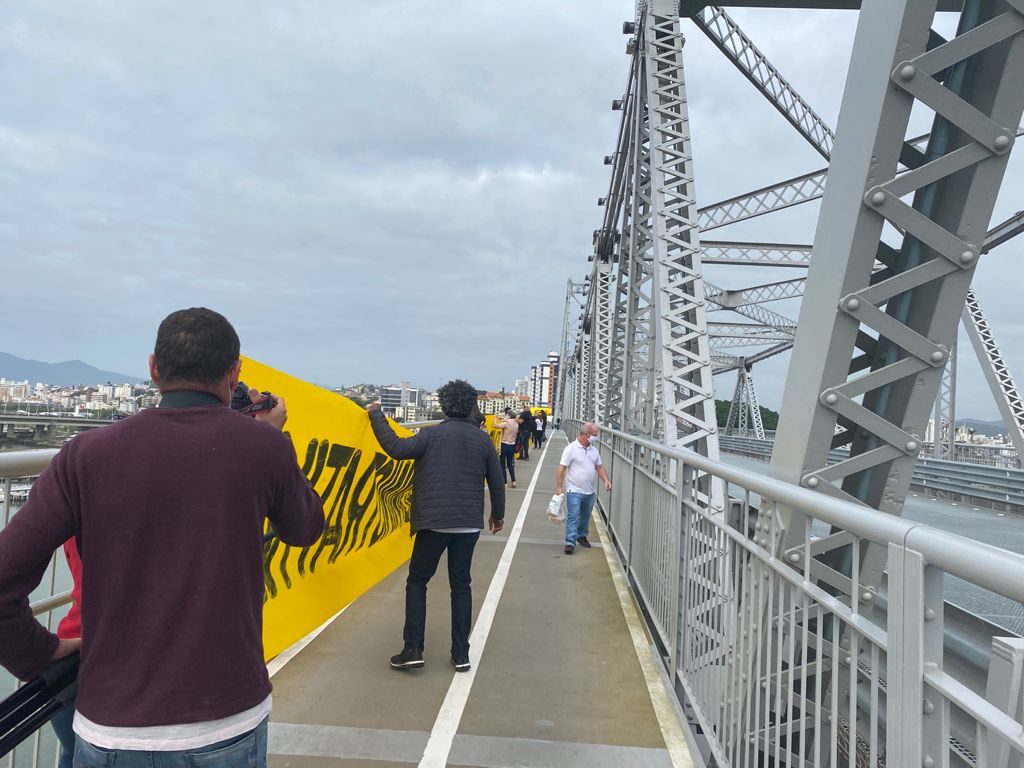 Os servidores públicos catarinenses se manifestaram contra a Proposta de Emenda à Constituição (PEC) 32/20, da Reforma Administrativa, novamente, na quinta-feira, 23, estendendo uma faixa de 40 metros na ponte Hercílio Luz, em Florianópolis. A mobilização aconteceu uma semana após terem sido impedidos pela Polícia Militar de SC de protestarem no mesmo local.