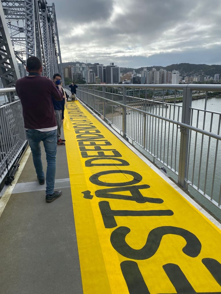 A atividade foi promovida pelo Fórum dos Servidores Públicos de Santa Catarina, que reúne mais de 25 sindicatos que estão lutando contra a proposta do governo federal. A mensagem da faixa foi um recado para toda a sociedade: “Os sindicatos de trabalhadores de Santa Catarina estão defendendo a tua vida! Não à Reforma Administrativa”.