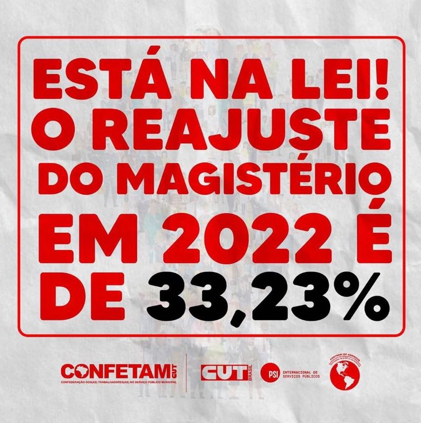 Pela legislação, o reajuste dos profissionais é atrelado ao chamado valor por aluno do Fundeb (Fundo de Manutenção e Desenvolvimento da Educação Básica e de Valorização dos Profissionais da Educação), definido pelo MEC. Pela variação da inflação nos últimos dois anos, o reajuste do valor por aluno foi de 33,23% em 2022.