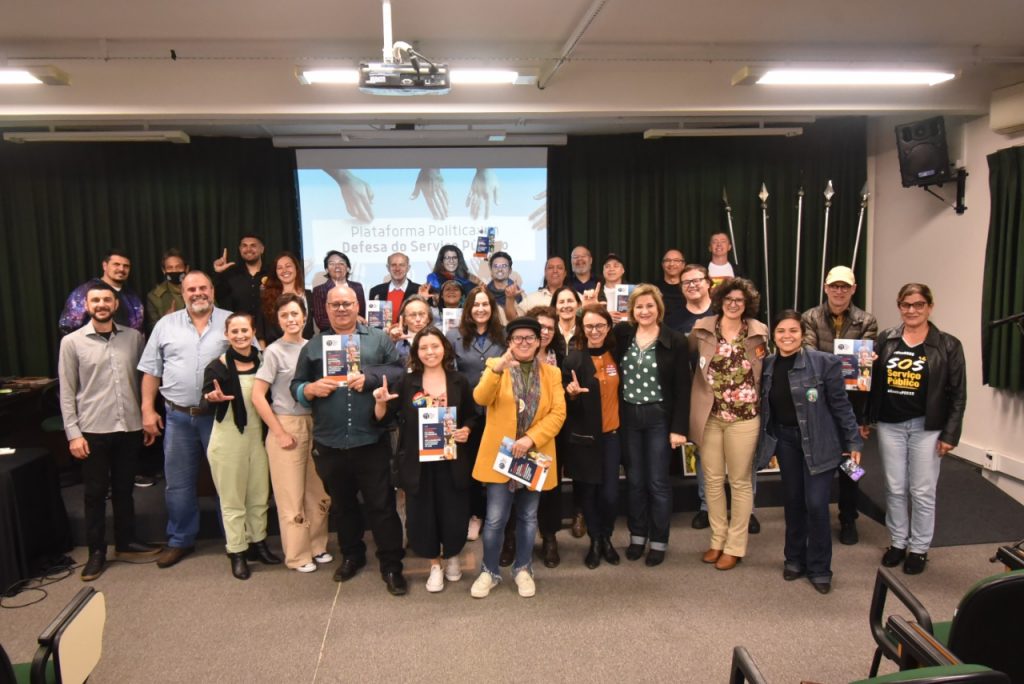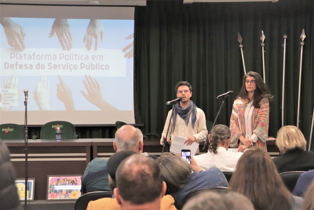Em evento histórico realizado pelo Fórum Catarinense de Defesa do Serviço Público na noite desta terça-feira, 13, cerca de 50 candidatos e candidatas às eleições 2022 se comprometeram em defender o serviço e os trabalhadores públicos. A atividade lotou o auditório do SINJUSC durante o lançamento da Plataforma Política do Fórum Catarinense de Defesa do Serviço Público para as eleições de 2022.