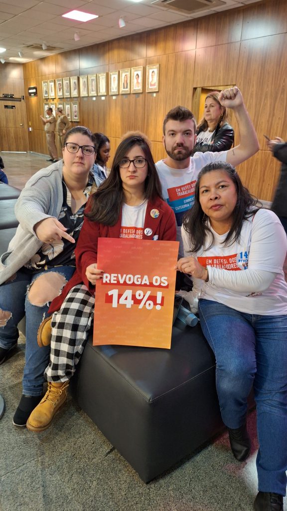 Nesta quarta, 4 de outubro, durante audiência pública da Comissão de Finanças e Tributação, dirigentes das entidades sindicais que representam o serviço público estadual defenderam a revogação dos 14% para parlamentares e trabalhadores que lotaram o plenário e o hall de entrada da Assembleia Legislativa (Alesc).