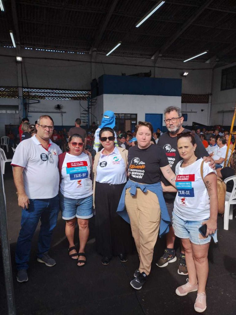 Dirigentes do Sintram-SJ participaram da assembleia dos trabalhadores da Comcap, convocada pelo Sindicato dos Trabalhadores no Serviço Público Municipal de Florianópolis (Sintrasem) na manhã desta quarta-feira, 8, no Limpú. Os trabalhadores da Comcap aprovaram, por unanimidade, a continuidade da greve por tempo indeterminado para exigir do prefeito Topázio a renovação do acordo coletivo sem retirada de direitos.