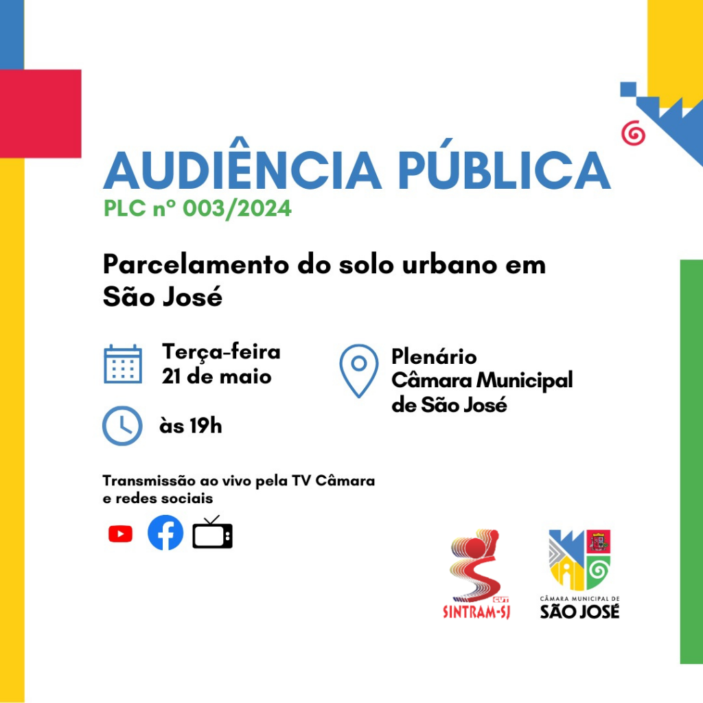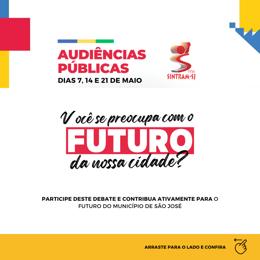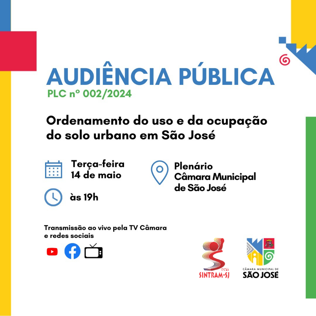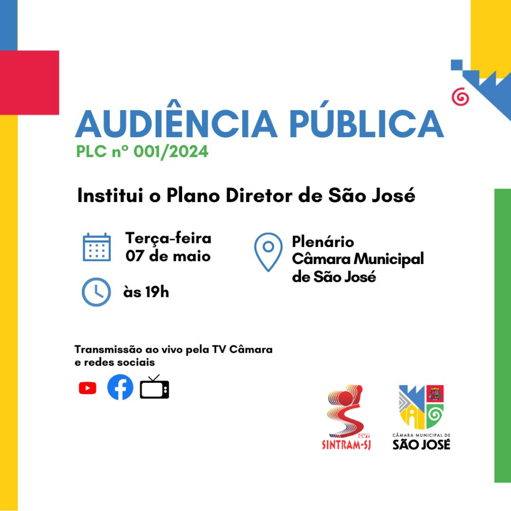 Então é hora de participar das audiências públicas que irão debater o Plano Diretor de São José, nos dias 7, 14 e 21 de maio, na Câmara de Vereadores! O Plano Diretor é um instrumento de planejamento urbano que estabelece diretrizes para o crescimento e a organização das cidades a médio e longo prazo.