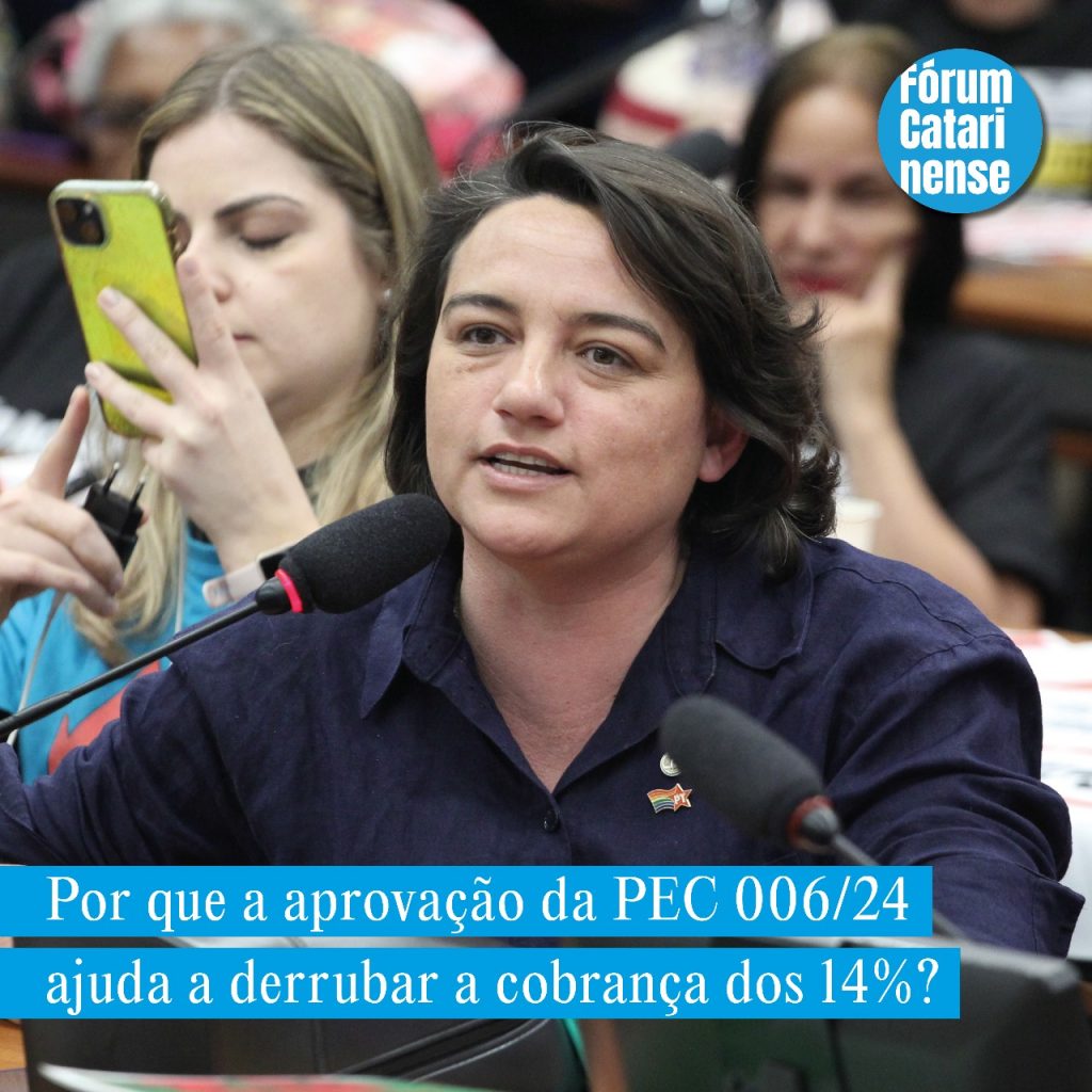 O Fórum Catarinense de Defesa do Serviço Público vai enviar uma delegação para acompanhar a audiência pública e conseguir o apoio de mais parlamentares ao apensamento da PEC 006/24 à PEC 555/06. Pois a PEC 006/24, que prevê a extinção gradativa das contribuições em 10 anos, seria “mais fácil de aprovar” que a PEC 555/06, que determina a extinção imediata.