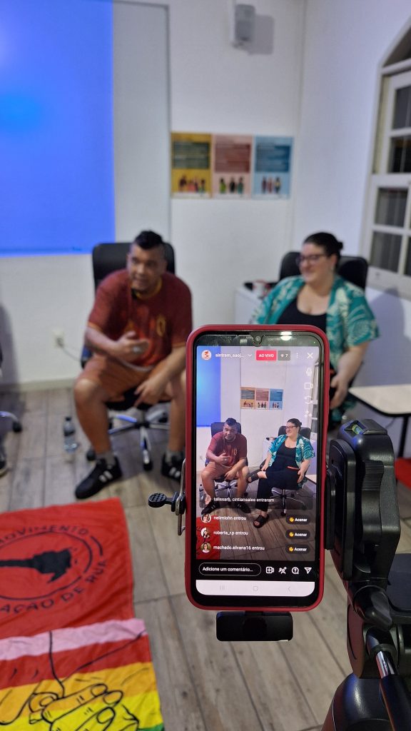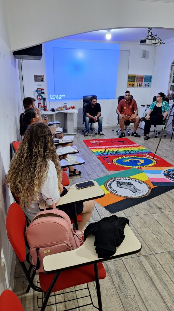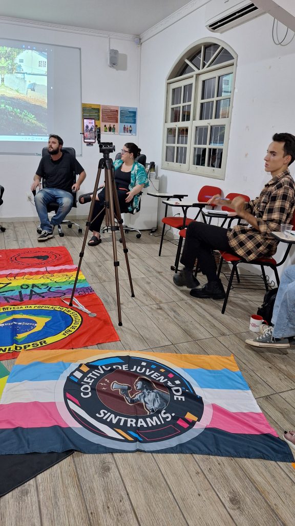 Os Coletivos de Juventude e de Combate ao Racismo do Sintram/SJ realizaram uma roda de conversa, no último dia 23, sobre “A Rua e a Ampliação das Possibilidades de Vida”. A atividade ocorreu na sede do sindicato com a participação do Psicólogo Antimanicomial, Gabriel Amado, e do coordenador do Movimento Nacional em Defesa da População em Situação de Rua de SC, André Schafer.