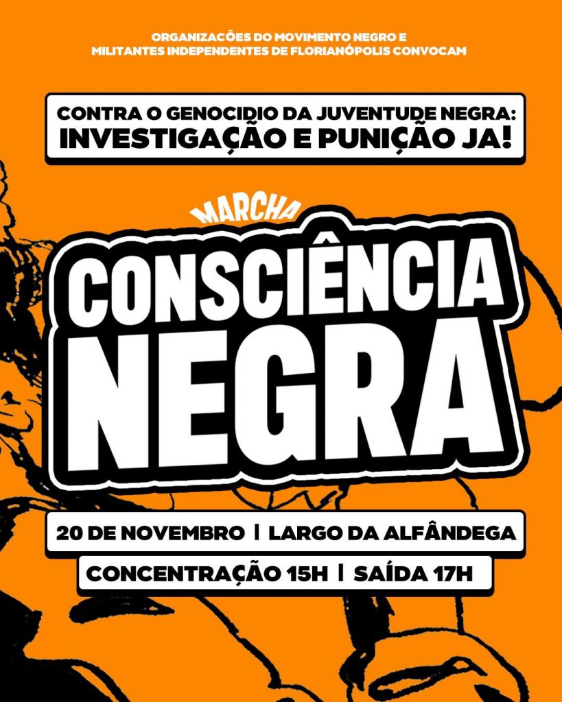 Servidores e servidoras de São José: nos somamos na luta antiracista pelo fim do genocídio da juventude negra, em especial neste dia 20 de novembro, na MARCHA DA CONSCIÊNCIA NEGRA!