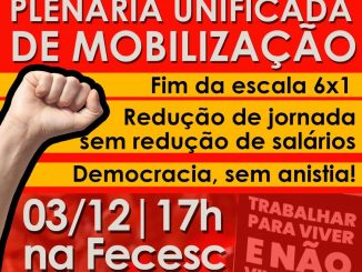 No dia 03/12, às 17h, na Fecesc (Av. Mauro Ramos, 1624 – Centro, Florianópolis), acontecerá a Plenária Unificada de Mobilização, organizada pelos Movimentos Sindical e Social de Santa Catarina. Juntos, vamos organizar a luta pelo […]