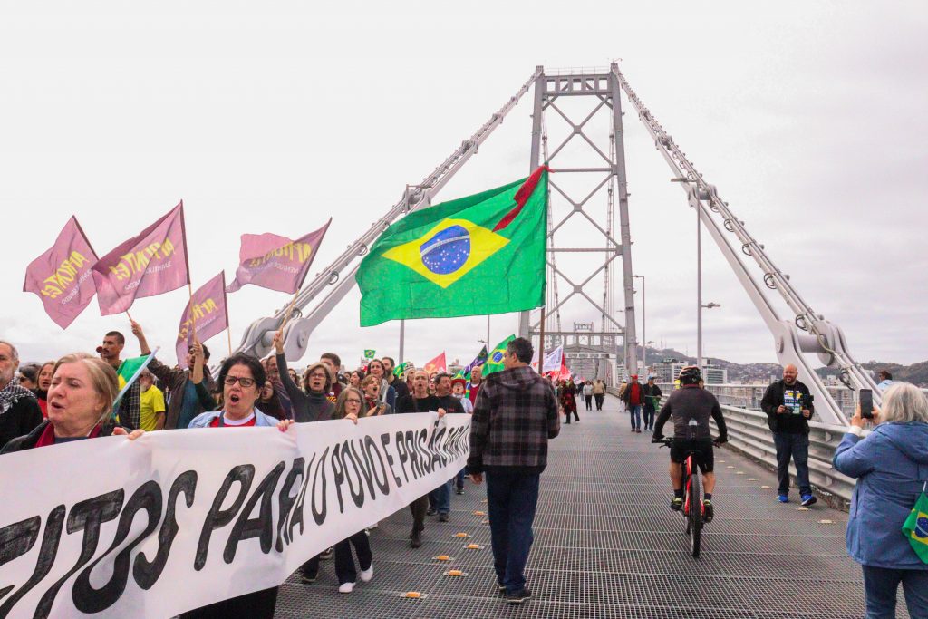Trabalhadores e trabalhadoras da região da grande Florianópolis estiveram nesse dia 7 de setembro ocupando as ruas da capital catarinense para dizer: quem manda no Brasil é o povo brasileiro! Não nos curvaremos aos interesses estrangeiros, somos um Brasil soberano.