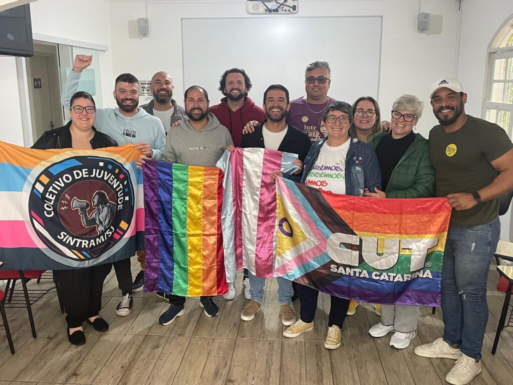 Além do Sintram/SJ, também participaram da organização a CUT Santa Catarina, o Sinte-São José, o Sinergia, a Fetram/SC, a Confetam, a Intersindical e o Sindsaúde. Afinal, LGBTQIAPN+ também é classe trabalhadora!
