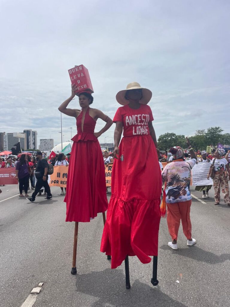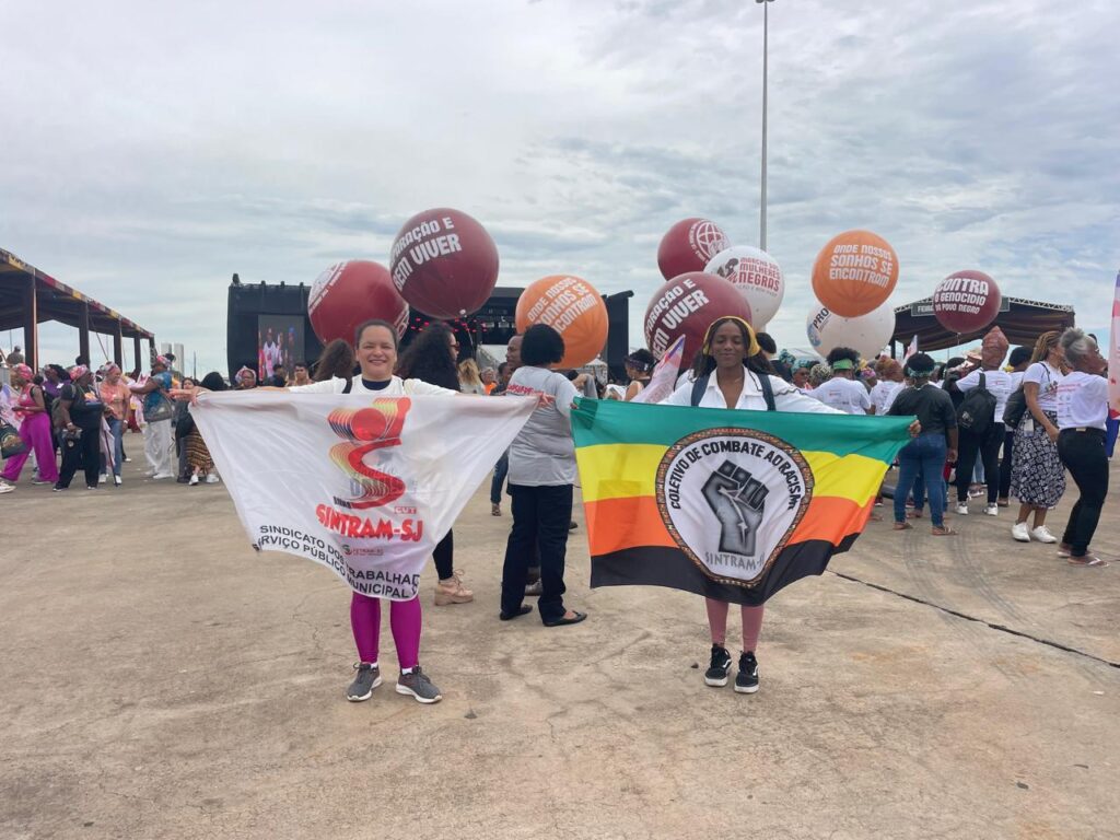 O Sintram/SJ fez parte de um momento histórico no dia 25 de novembro. O sindicato participou da Marcha das Mulheres Negras Por Reparação e Bem Viver, evento que aconteceu após dez anos da última edição. Segundo a organização, cerca de 500 mil pessoas percorreram a Esplanada dos Ministérios em alas regionais e uma internacional. Em trios elétricos, faixas, palavras de ordem, cantos, rezos e manifestações artísticas, a multidão reivindicava reparação histórica e mais poder para as mulheres negras, sem deixar de afirmar a sua identidade, cultura e ancestralidade.