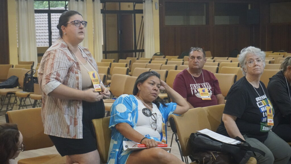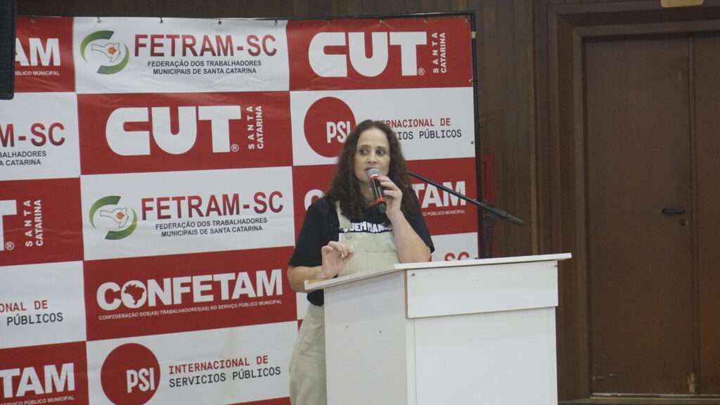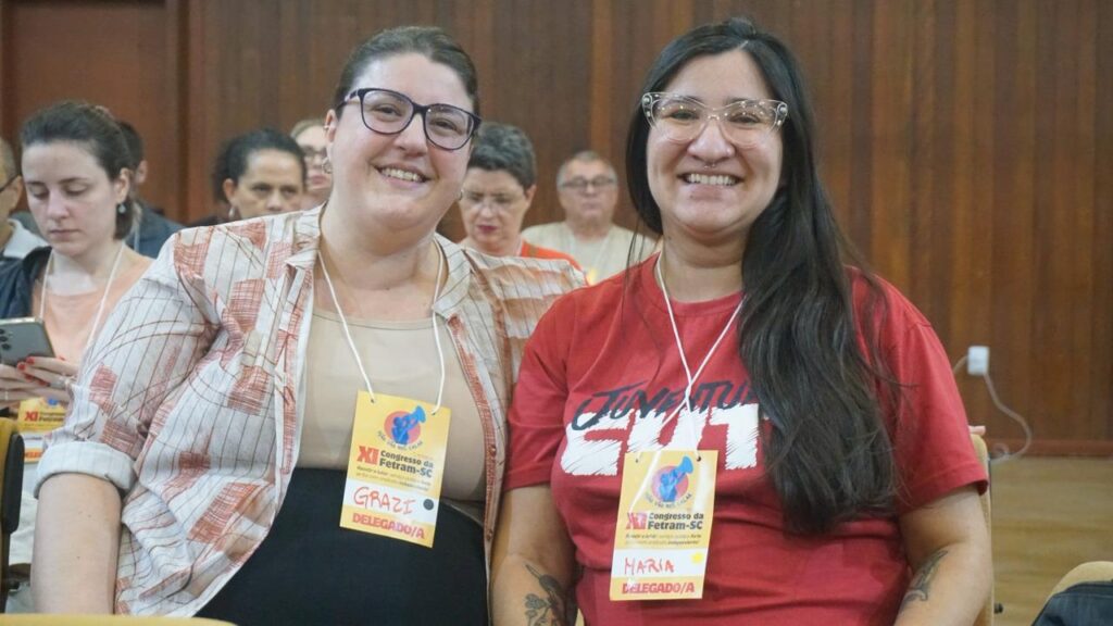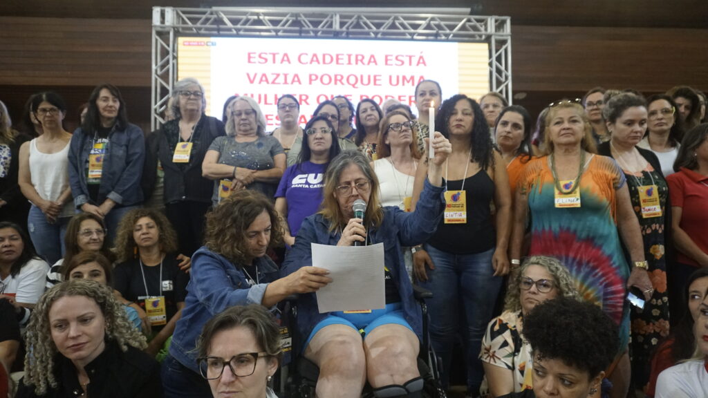 Um dos grandes destaques foi o protagonismo das mulheres. Elas formaram a maioria entre os delegados credenciados, confirmando sua liderança no movimento sindical. Um momento de forte simbolismo foi a mística em memória das mulheres vítimas de feminicídio, que lembrou nomes como o de Catarina, assassinada recentemente em Florianópolis. As sindicalistas reafirmaram a urgência de colocar a violência de gênero na centralidade da pauta dos trabalhadores e trabalhadoras.