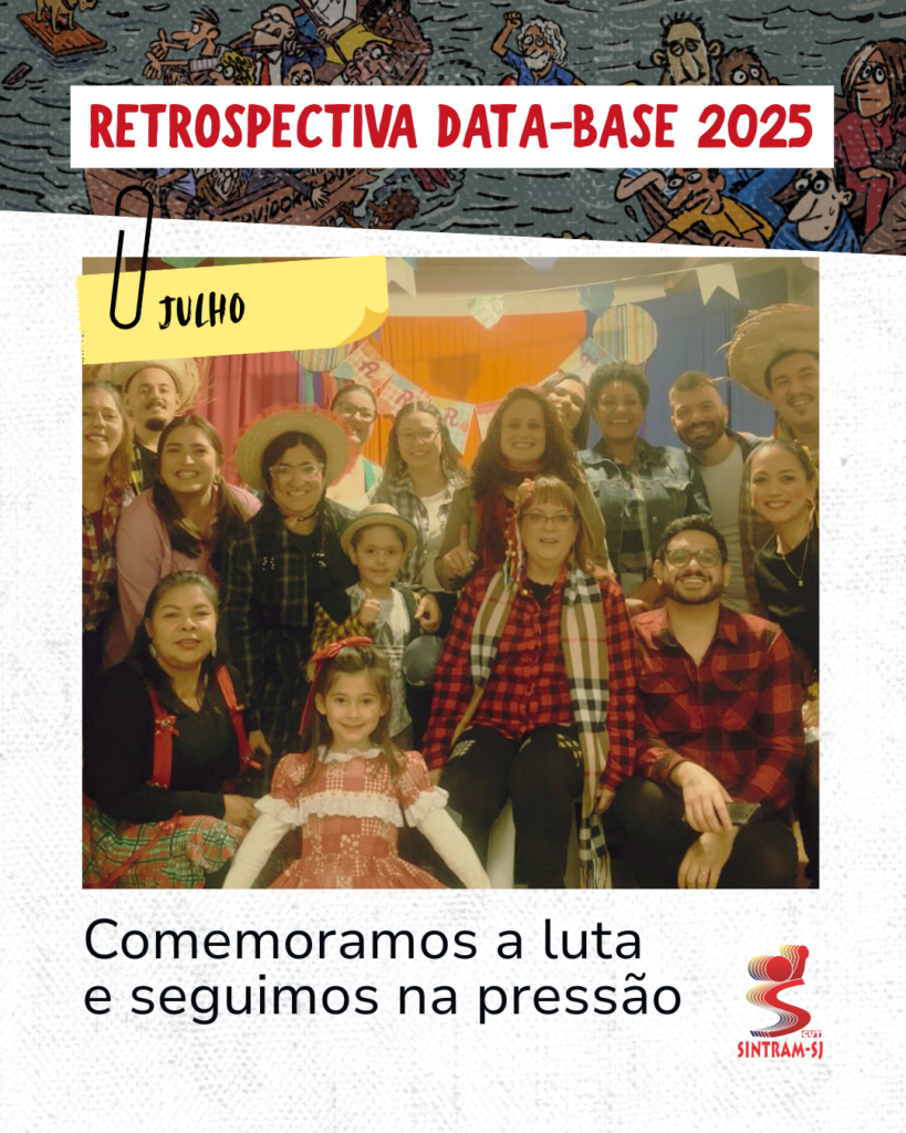 JULHO – A festa julina dos grevistas (foto do card) celebrou as conquistas da greve, mas a assinatura do acordo era o início de uma nova etapa: a da cobrança pela implementação do compromisso. A luta continuou, agora para garantir que a vitória fosse consolidada.