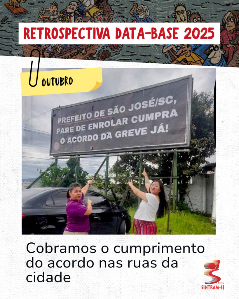 OUTUBRO – Após campanha de outdoors que ganhou as ruas da cidade, o Sintram seguia cobrando da prefeitura o cumprimento integral do acordo da greve.