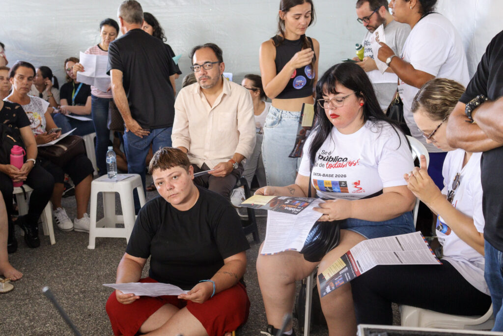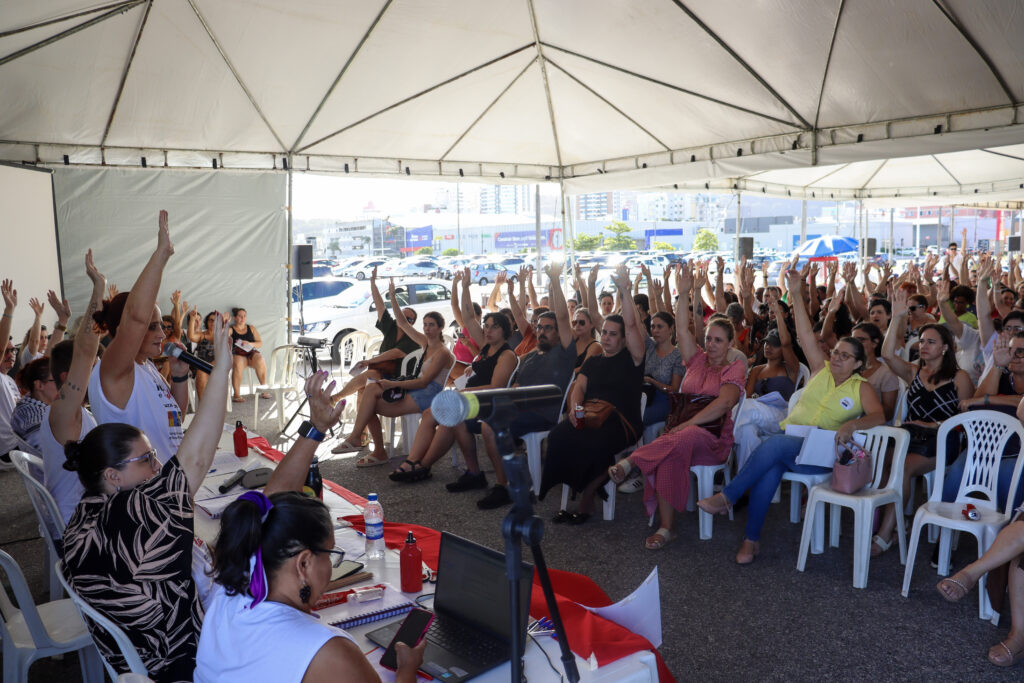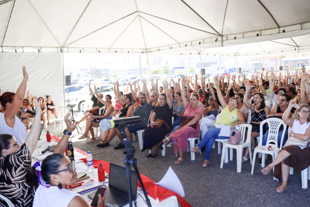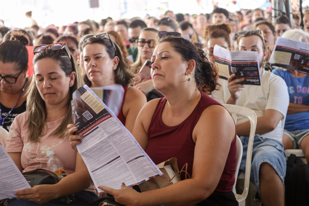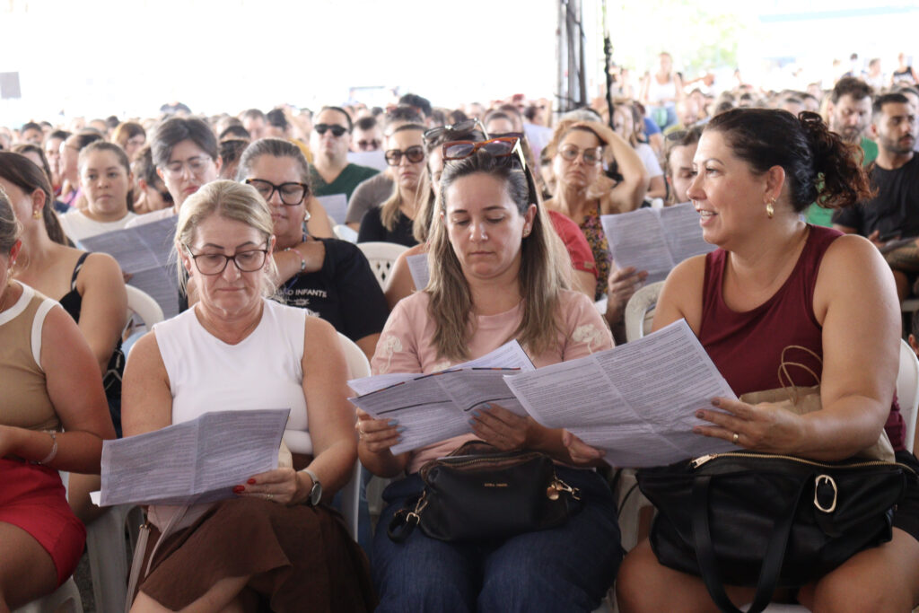 A ampla presença na assembleia refletiu o descontentamento generalizado. Servidoras dos Centros Educacionais Municipais (CEM) Vilson Kleinubing e Santa Terezinha resumiram o sentimento da categoria: “A gente nem deveria começar a trabalhar nessas condições.”