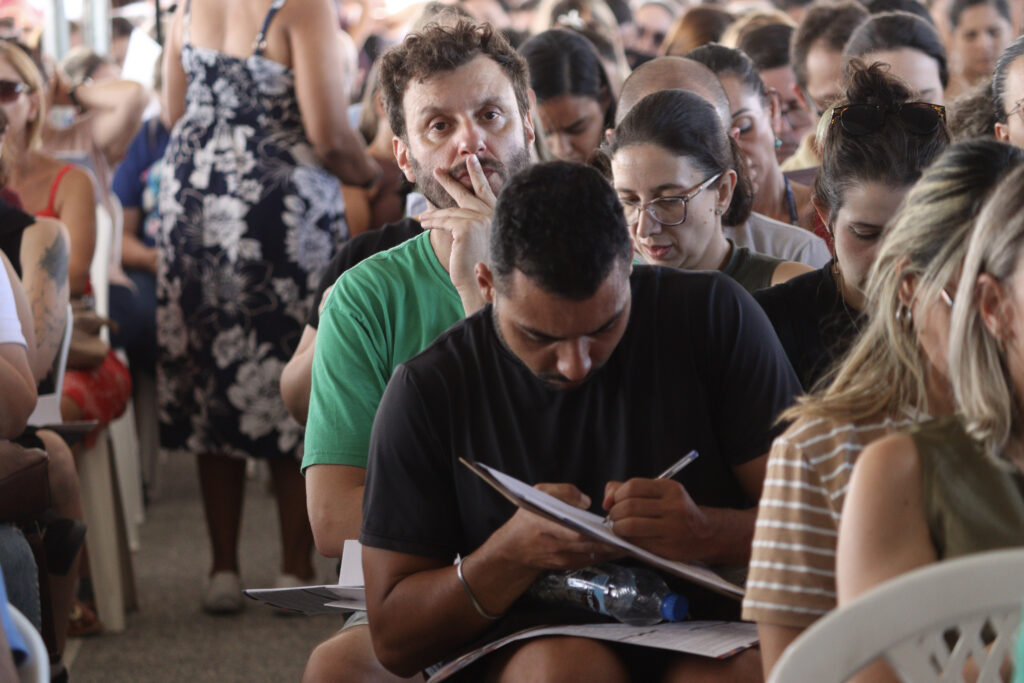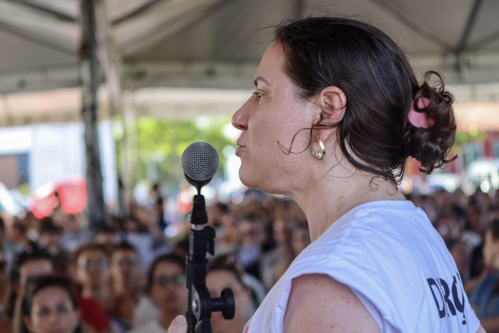 Uma professora do CEI Regina Bastos também trouxe um relato contundente sobre as condições enfrentadas na ponta: “Estamos cansadas. Nossas reivindicações raramente são aceitas, a estrutura está precária. Este ano colocaram ar condicionado, mas muitos já estragaram. As crianças ficam muito agitadas com o calor, não dá pra fazer um trabalho efetivo. Faltam auxiliares para a educação especial”, contou.